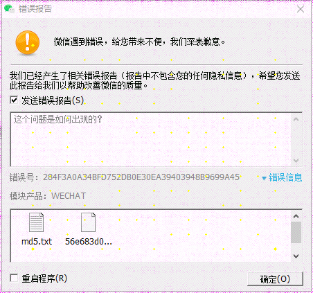 周二上班突然就是用不了了,真服了,登陆瞬间就弹出这个错误报告,无法正常使用微信,什么重装系统,什么下载最新版本,什么百度各种方法都用了,还是不行,就是不行,微信你到底行不行?