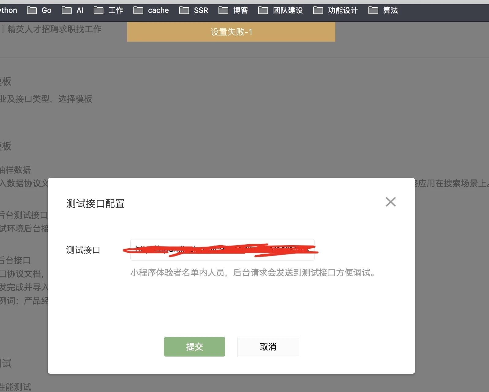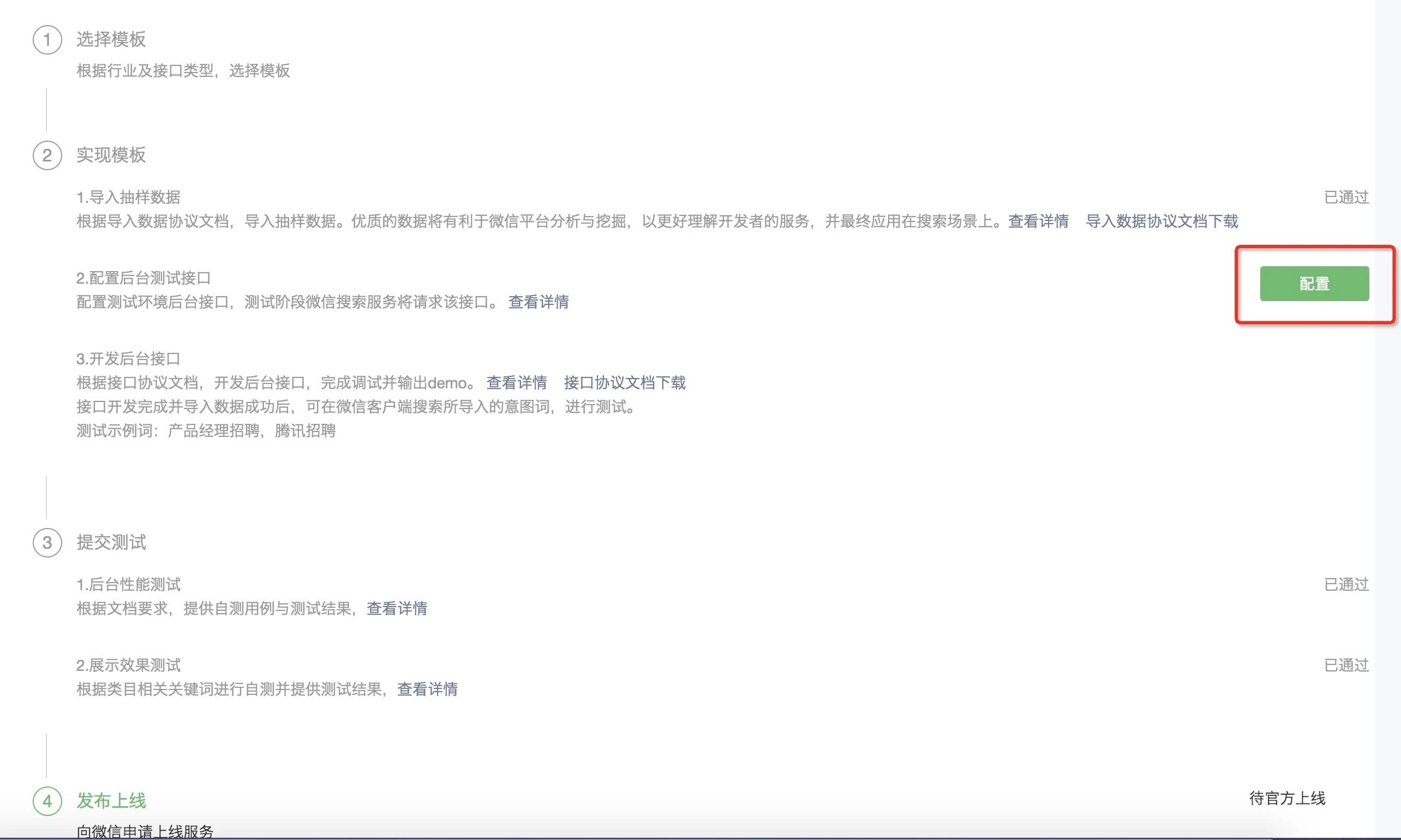 微信搜一搜的自定义模板,去年接入的该功能,中途暂停了,今年7月重启后提示需要配置测试接口,多次尝试后一直失败,哪位大神帮忙看看怎么处理?