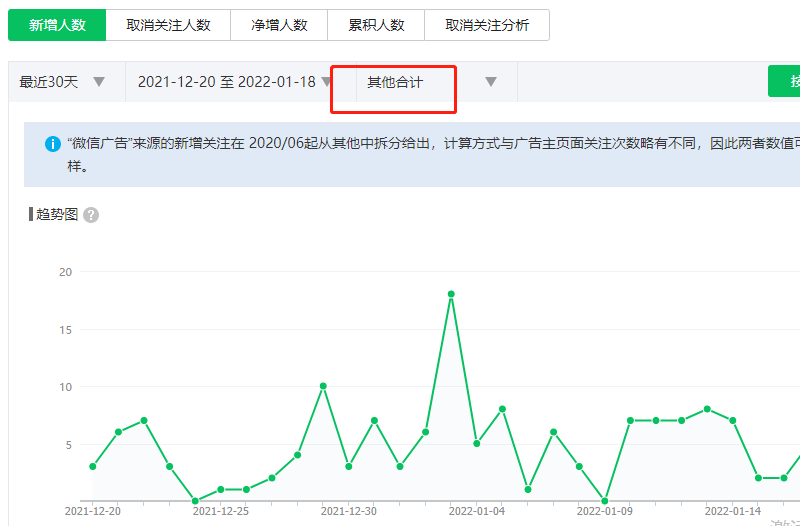 公众号用户分析里的全部来源,里面有一个其他,其他是统计的什么呢?比如二维码是扫码关注的,其他是哪里关注来的