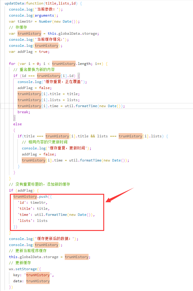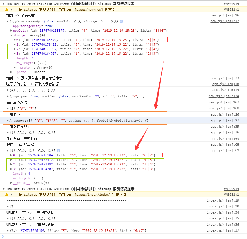 运行打印如下:【注意】添加的新元素对象内容是完全跟历史 storage数组中的元素是不同的,所以不会进入更新内容的条件,只会 push 新元素。但打印的结果却并不是这样