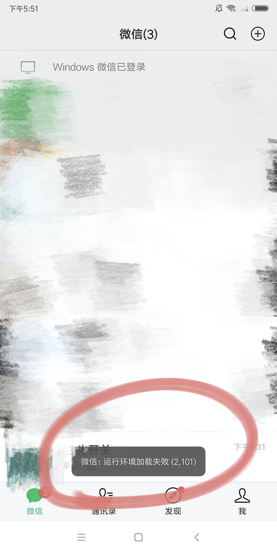 麻烦在手机微信那里上传下日志: 我->设置->帮助与反馈右上角有个上报日志的入口,麻烦提供一下微信号,时间点