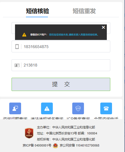 小程序备案时,短信核验过程中提示以下内容是什么意思?