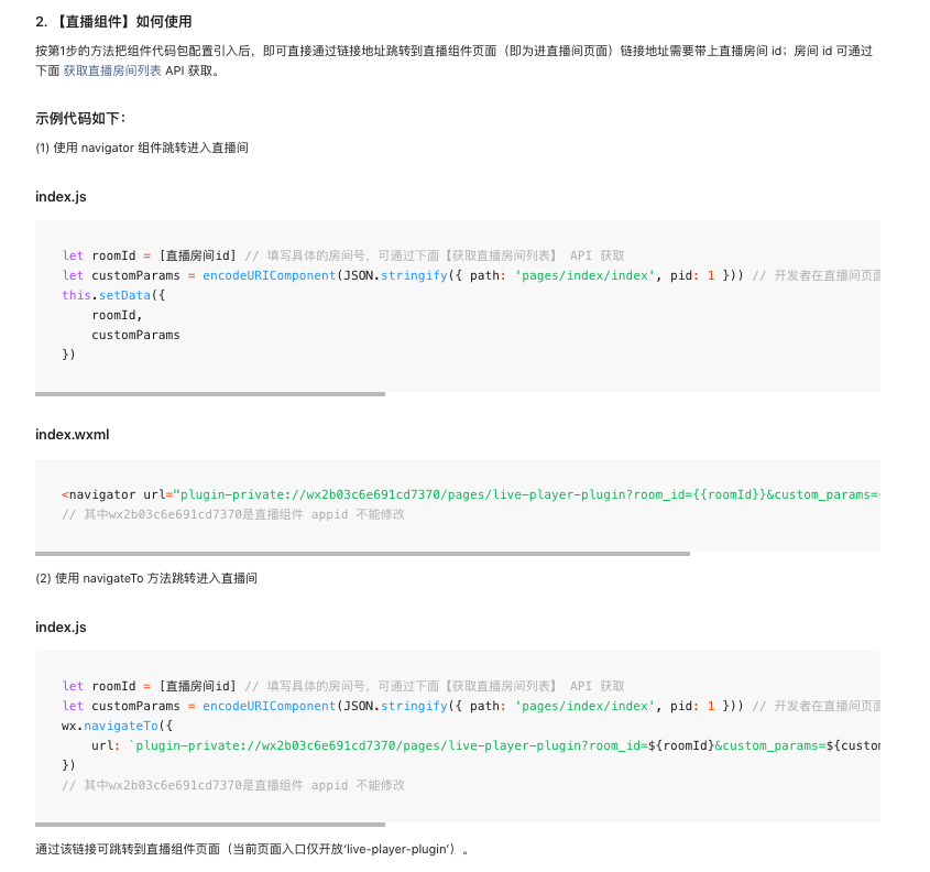 请问微信小程序直播 进入直播间的代码怎么写呢?