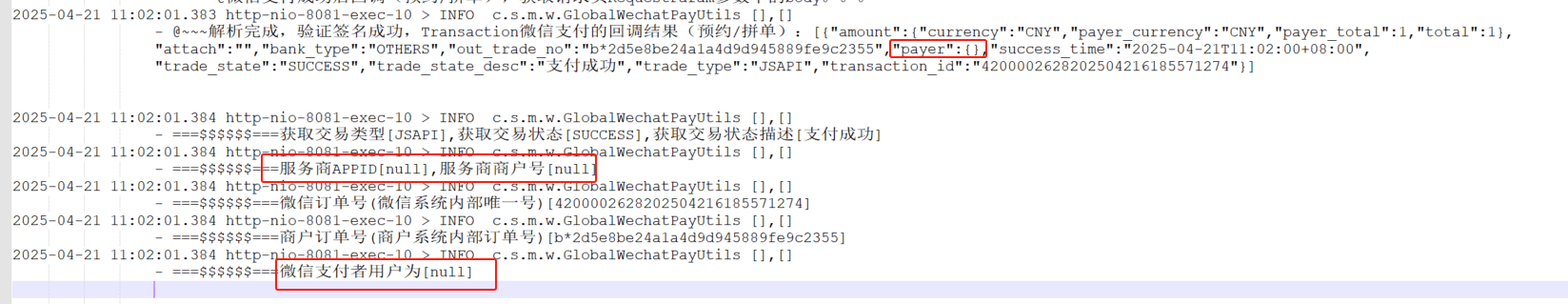 很明显自己解析出现问题了,打印原始回调日志去比对就知道错在哪里了