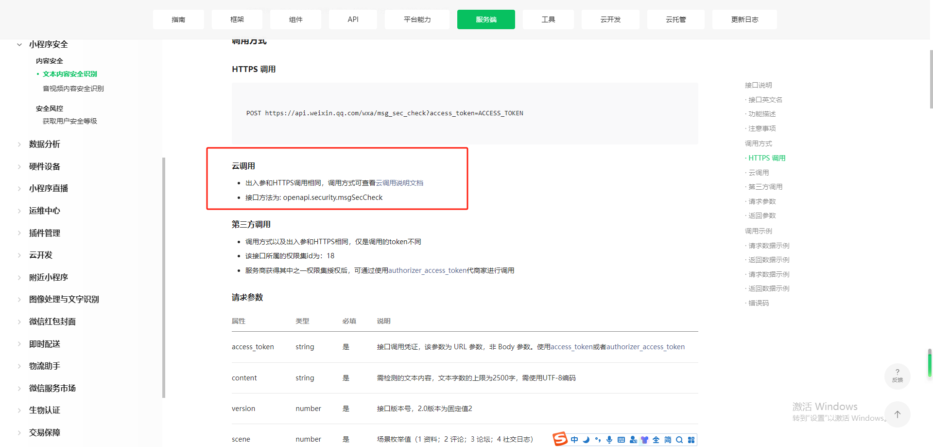 云调用的文本内容安全识别API, 在微信开发者工具里面,API怎么搭建啊? 官方告诉了网址,但是没有视频指点,不懂在哪里懂。。。。https://developers.weixin.qq.com/miniprogram/dev/OpenApiDoc/sec-center/sec-check/msgSecCheck.html