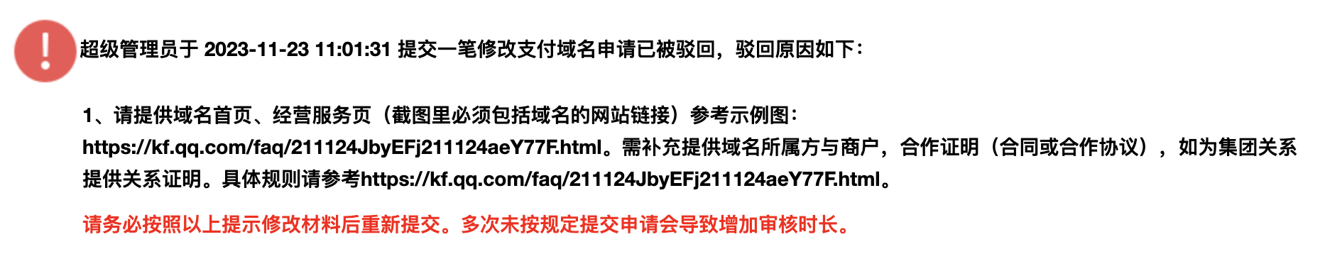 合作商户申请了H5支付,因为使用的域名是我平台(非同主体、非同集团)的域名,因此提供了提交页面中的授权函材料,但审核仍被驳回。