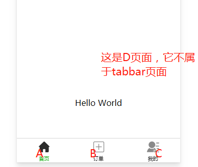 比如tabbar有3个页面对应A,B,C。但是我有个D页面,想显示tabbar,如图: