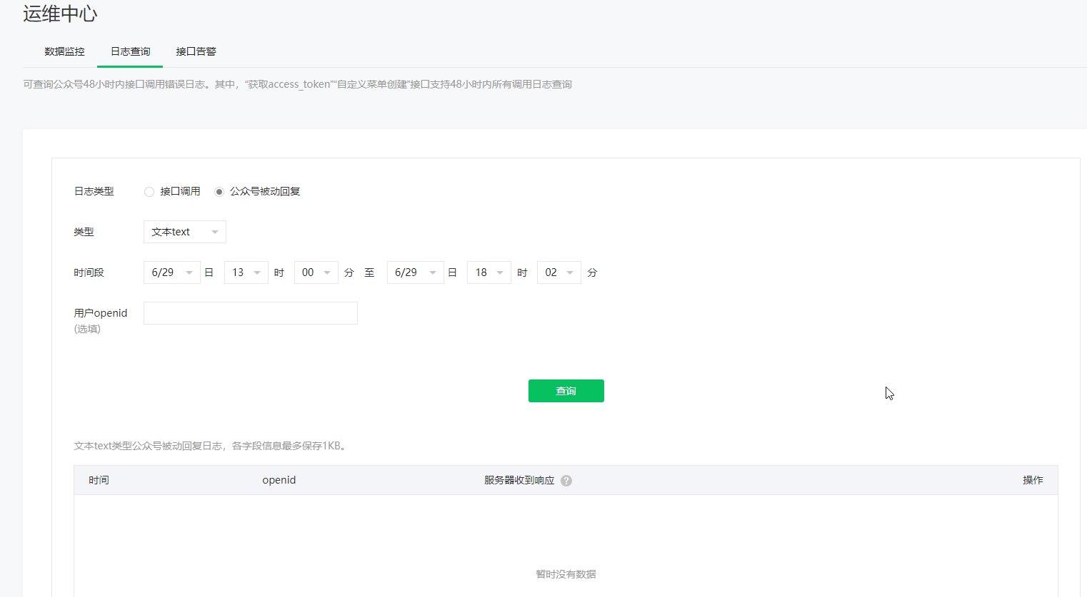2. 请求参数: 小程序/开发/服务端/运维中心/查询实时日志