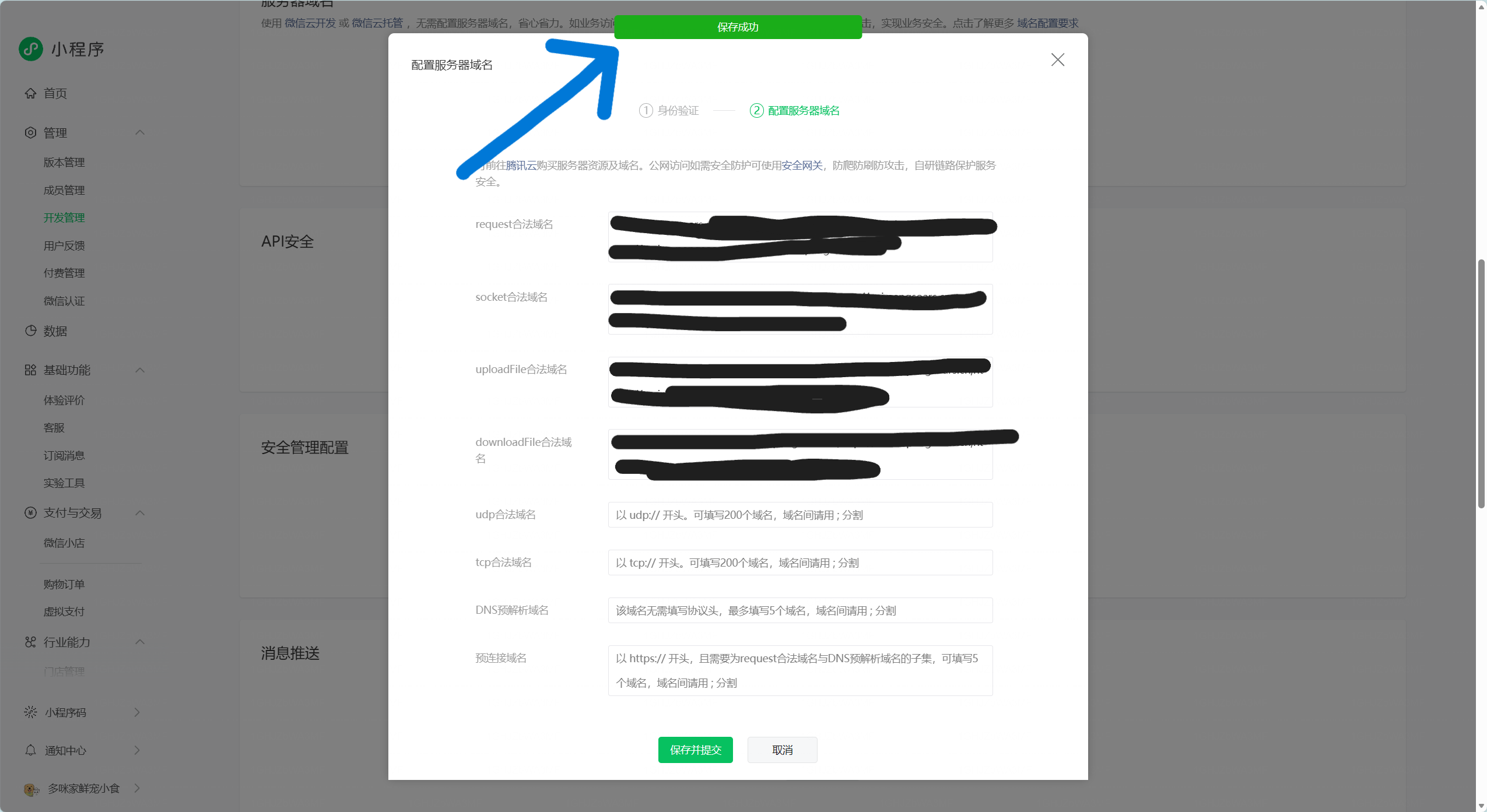 配置服务器域名提示成功后会自动刷新页面,