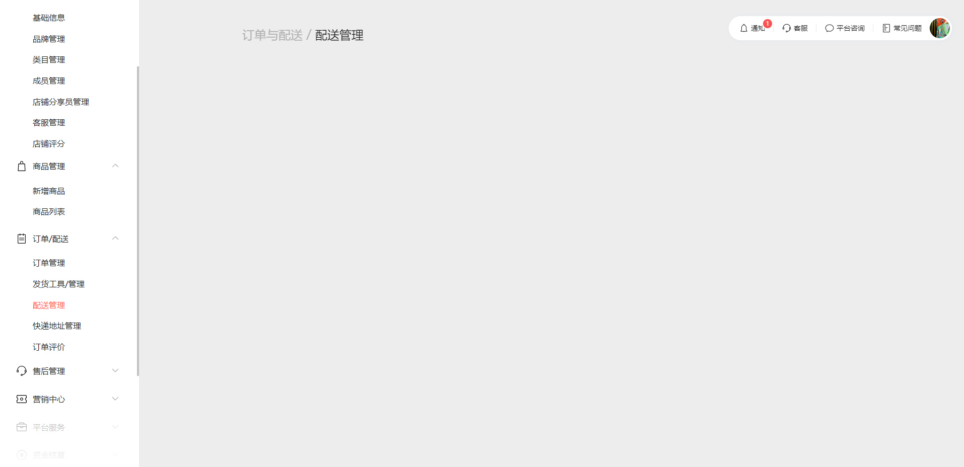 在小店后台---订单/配送中打开【配送管理】和【快递地址管理】页面是空白的,无法创建或修改配送模版,请看下图