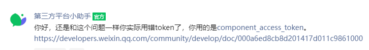 - 通常是把小程序的access_token、公众号的access_token、第三方平台的component_access_token、第三方平台的authorizer_access_token搞错了。