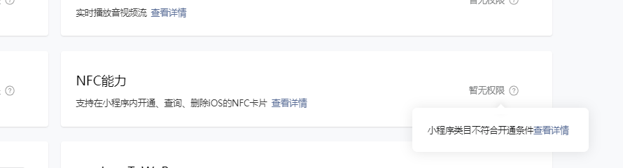 申请NFC接口,提示小程序类目不符合开通条件?但是我已经开通了设备管理类目,是什么问题,申请唤醒nfc小程序的也开通了