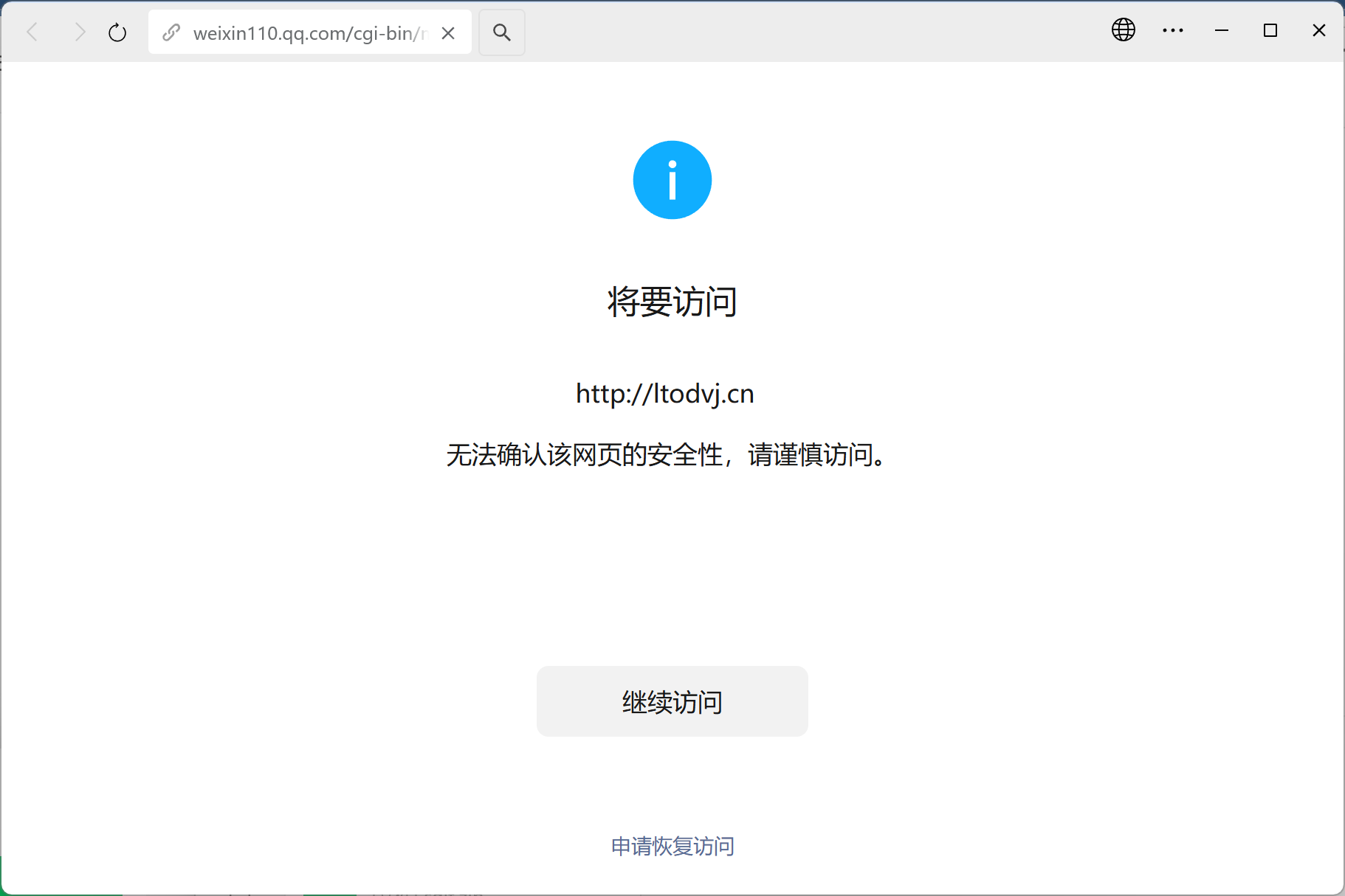 域名备案是正常的,浏览器访问正常,微信访问网站出现“无法确认该网页的安全性,请谨慎访问”,经检查网页里没有不安全的内容,网站符合《微信外部链接内容管理规范》,腾讯安全网址安全中心检测网页没有不安全或者风险内容,请核实后帮忙解除拦截,谢谢