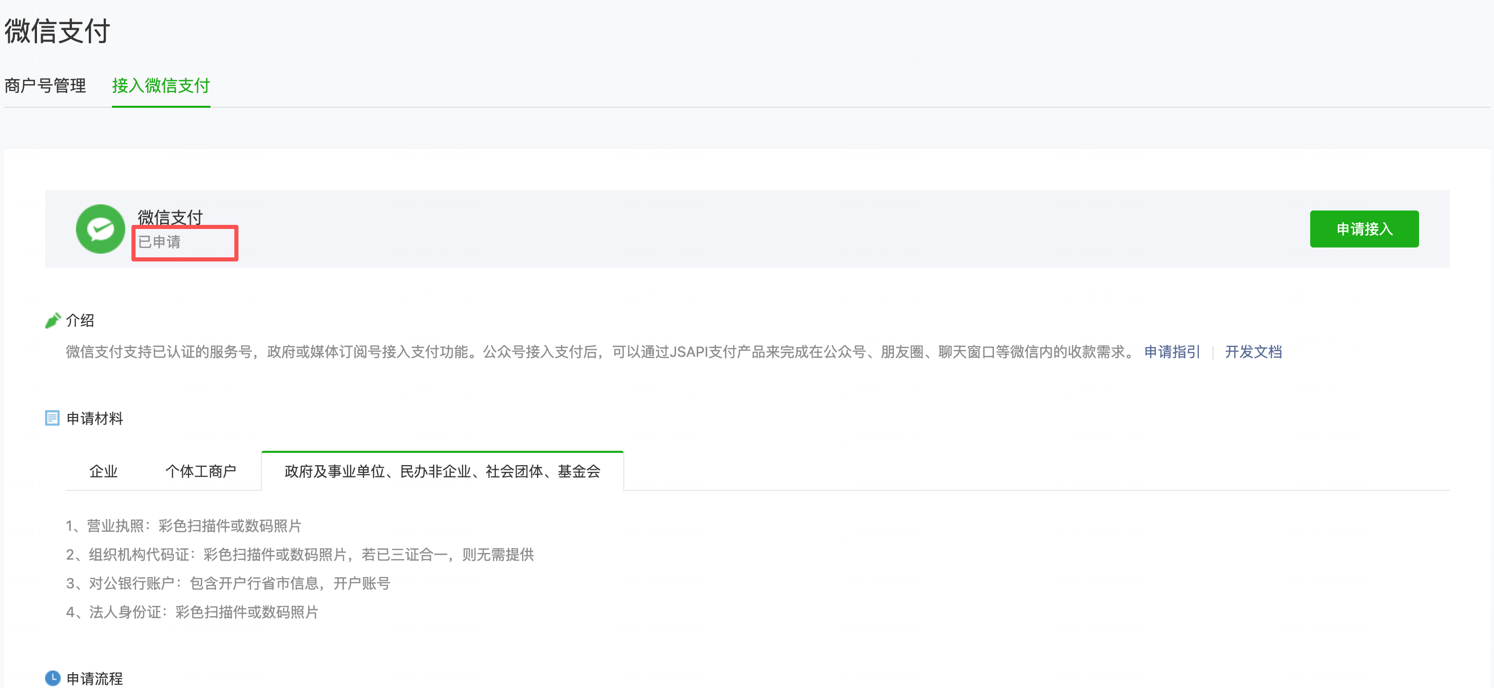 非常迷惑小程序到底该如何接入微信支付。商户号也绑定了。这里变成已申请状态,但是查申请单又查不到。代码也报错