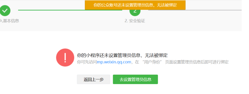 用微信开放平台绑定小程序,提示公众平台、小程序未设置管理员。但是我们微信开放平台、公众号、小程序都是设置有管理员的。这是BUG还是什么情况?