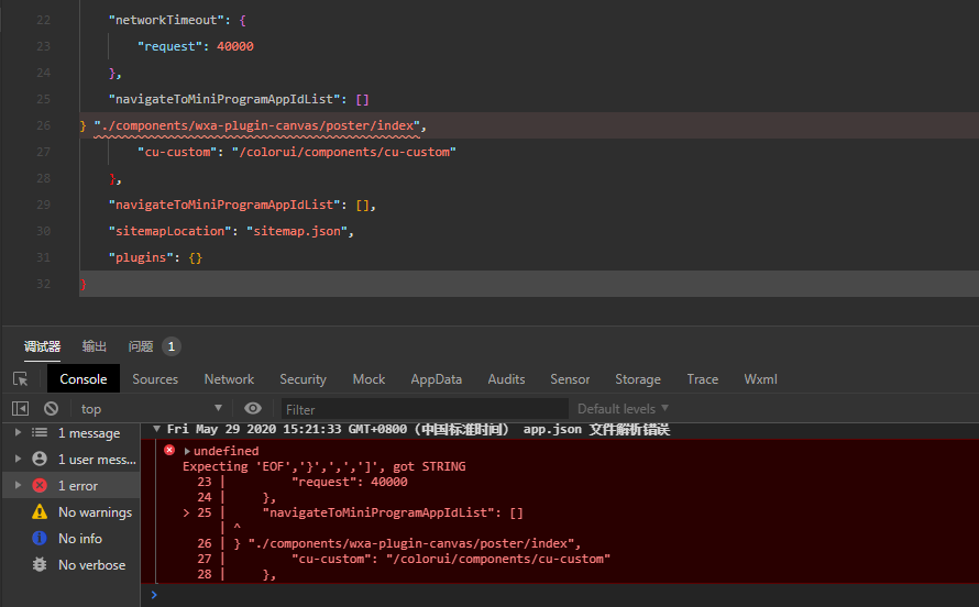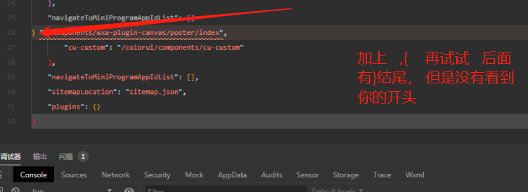 初学者求助Expecting 'EOF','}',',',']', got STRING怎么解决?