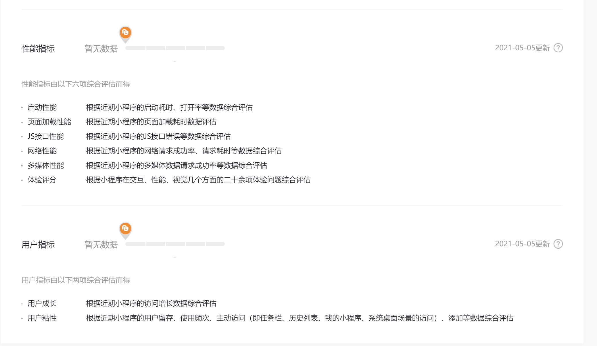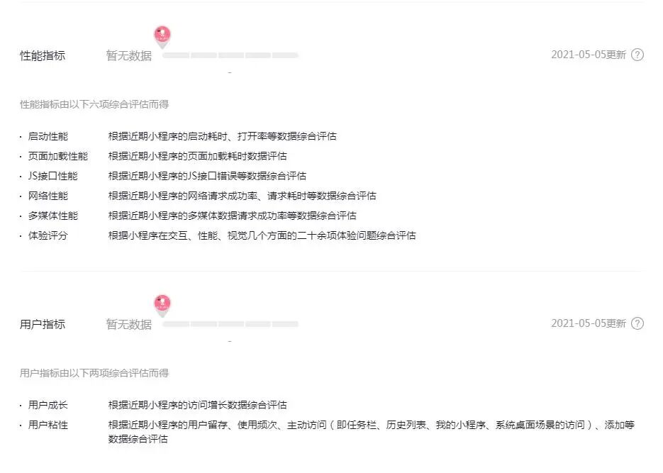 小程序评测,性能指标和用户指标为什么没有数据啊?