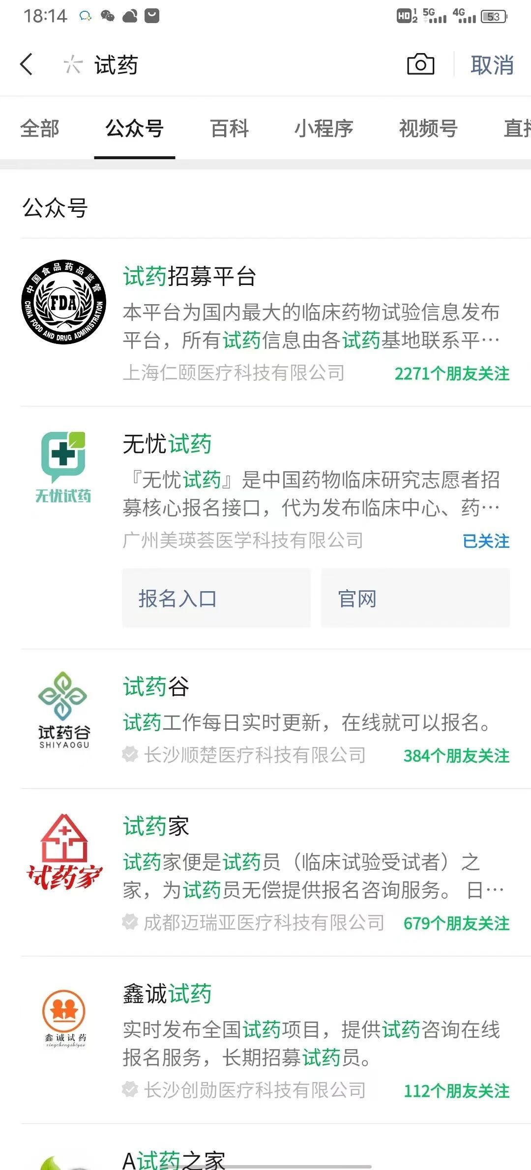 是否公众号名称有问题呢?我看别人的A试药圈/A试药之家/A试药谷/A试药呗,都好好的展示在搜一搜关键词列表里