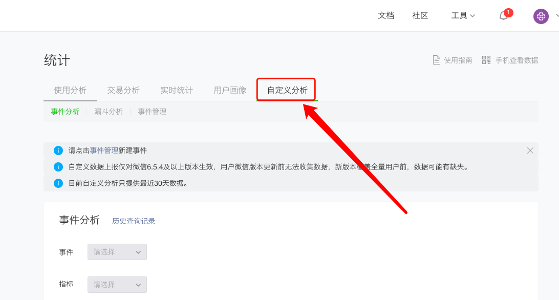 小程序中,使用“自定义分析”进行事件分析、漏斗分析等分析出的结果数据在哪里能下截