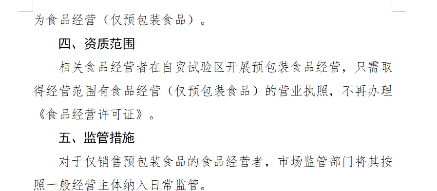 上海自贸区的相关文件已经说明取得经营范围有食品经营(仅预包装食品)的营业执照,不再办理《食品经营许可证》