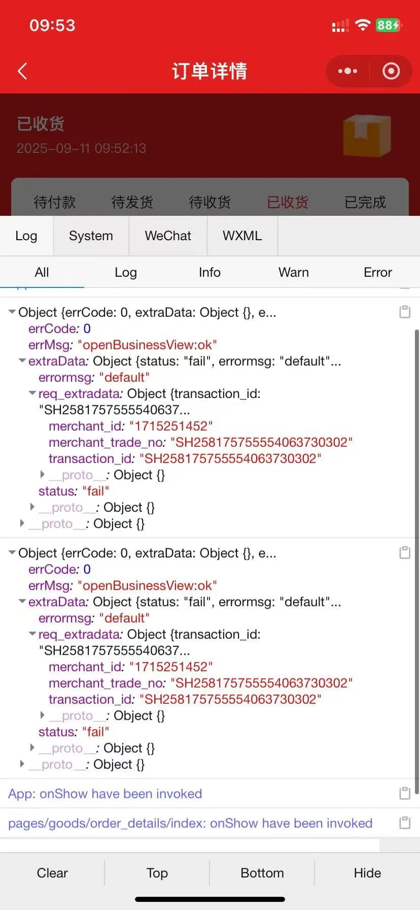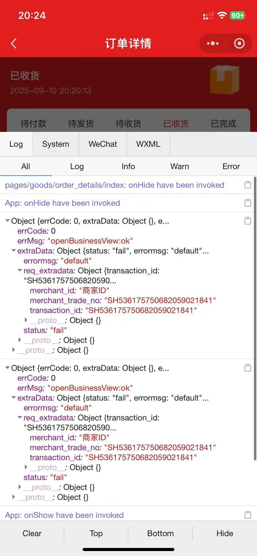 transaction_id: "SH536175750682059021841//'微信支付单号'