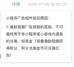 小程序激励视频组件被驳回,但是我看别人的小程序可以兑换话费、商品、和红包啊?为什么他们的可以呢?