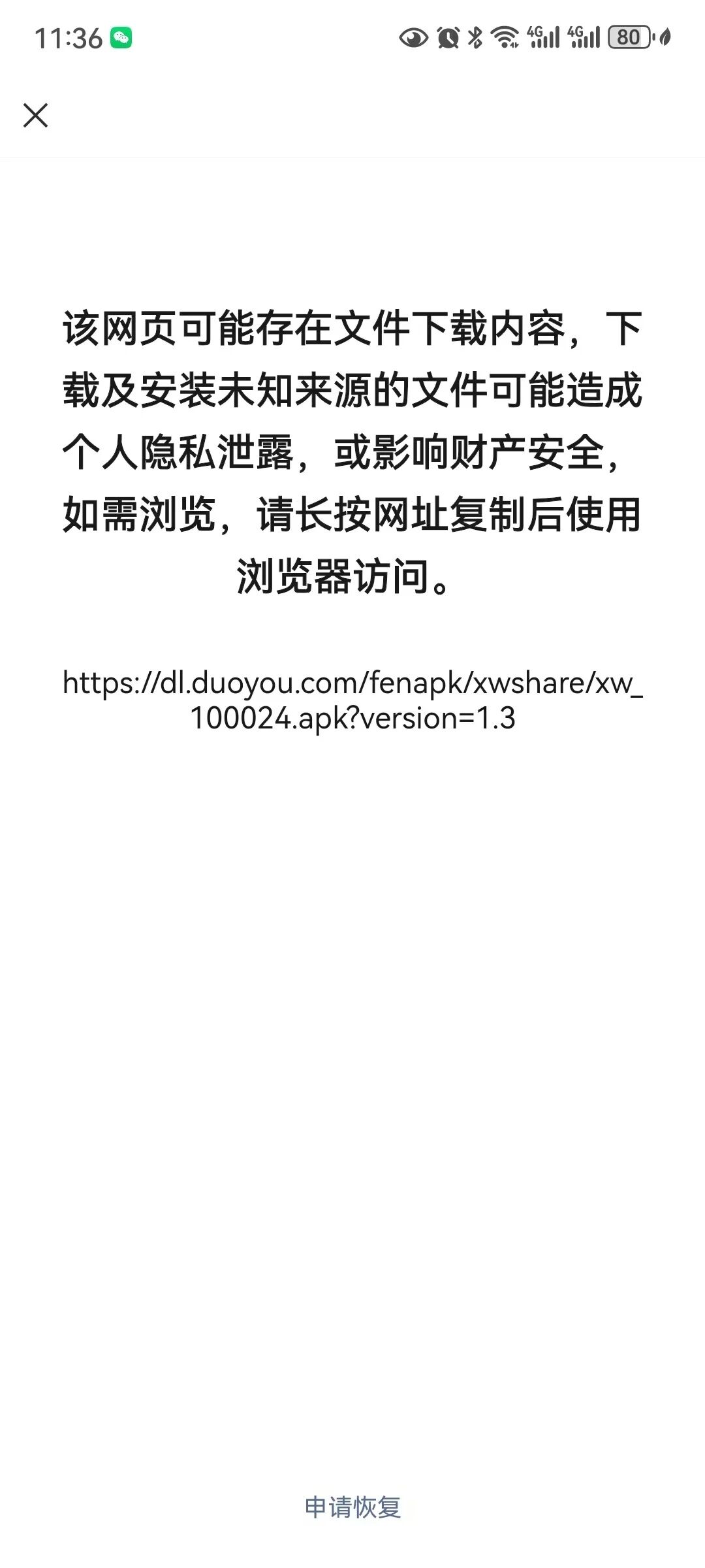 你好,根据平台规则,直接提供exe和apk下载的链接会出现该提示,建议复制网址到外部浏览器打开,请知悉。