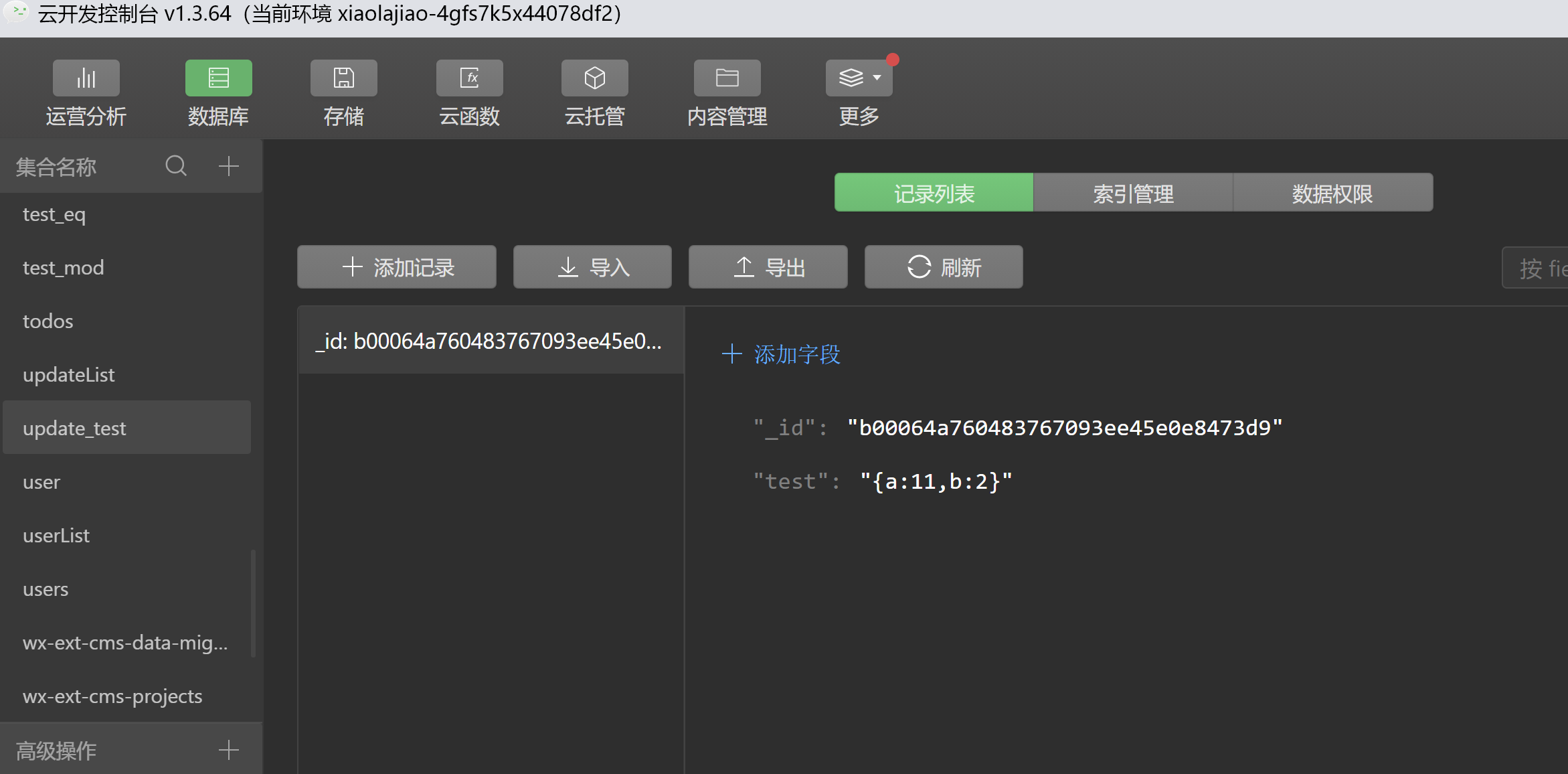 如果使用 update将此字段更新为 一个object对象{a:11,b:2}时,提示更新失败。
