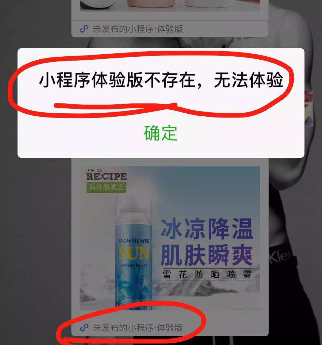 很显然的,这个用户自己没有 体验版权限,于是点开小程序提示了: