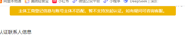 小程序微信认证,显示主体工商登记信息和账号主体不匹配,这个账号主体是在哪里显示的啊? 我不知道这个账号主体和主体工商登记信息有哪里不一致呢?