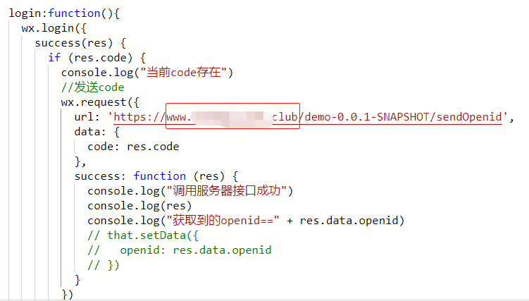 url: 'https://'+getApp().global.ip+'/demo-0.0.1-SNAPSHOT/sendOpenid',