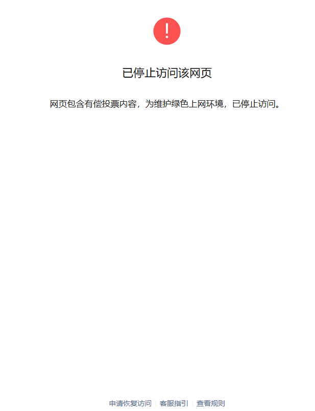 网页被恶意投诉:网页包含有偿投票内容,为维护绿色上网环境,已停止访问?