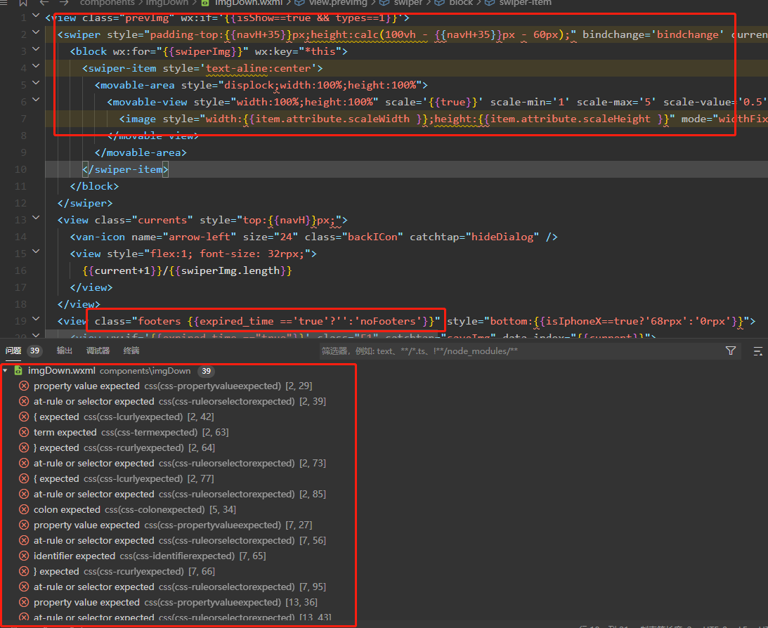 2、提供一下打开这个 wxml 文件时,工具完整的底部状态栏截图呢