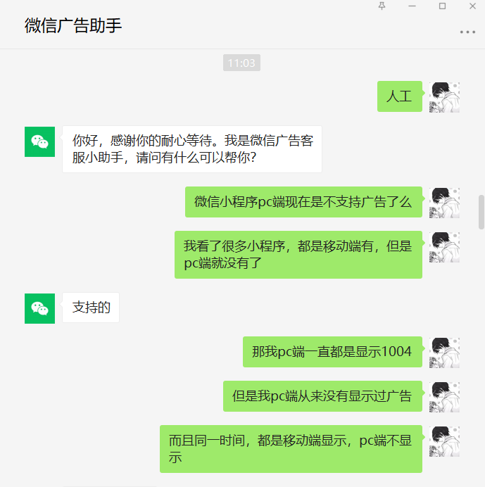 一直显示1004,但是用户们都反映PC端一个广告都没有,都没拉取成功过广告,怎么就会没有合适的广告了呢。太极端了吧。