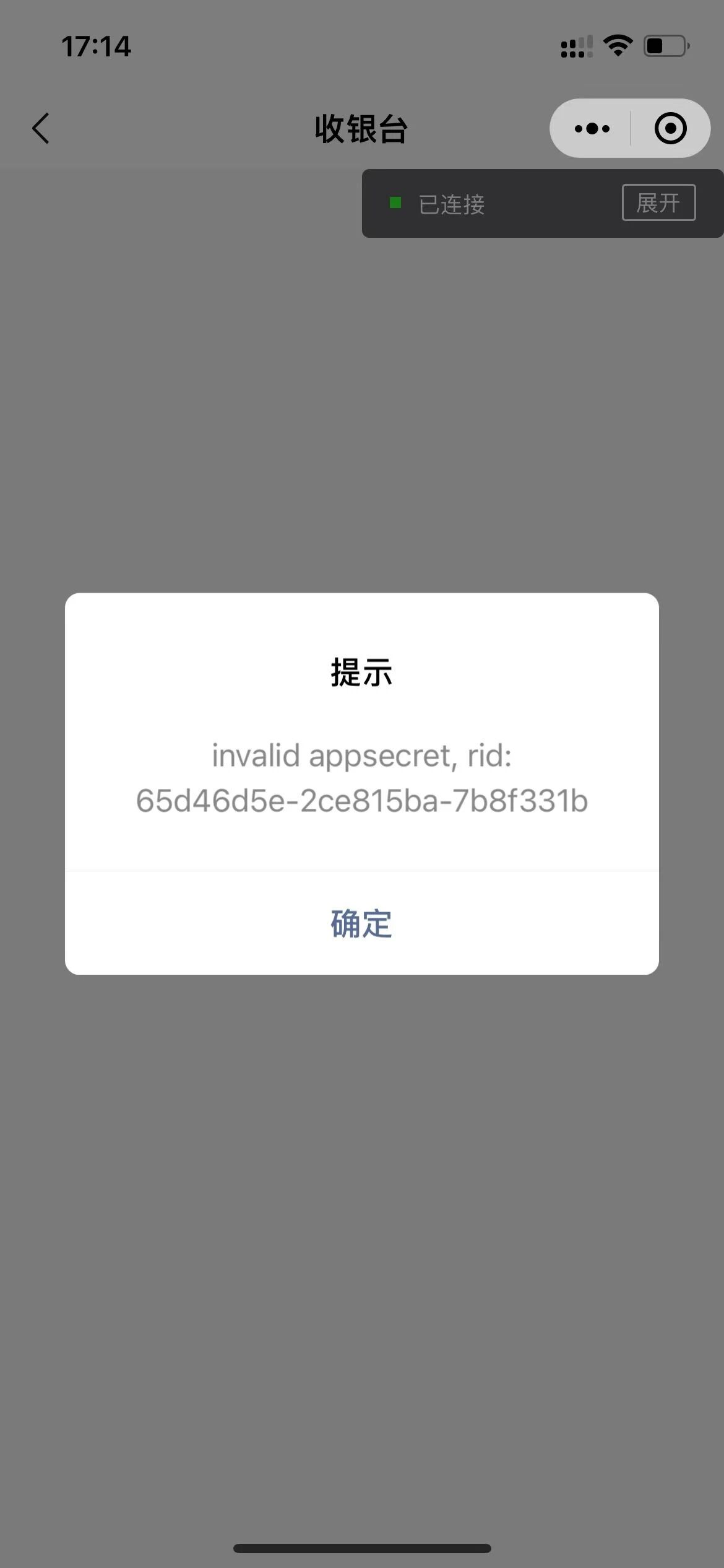 修改了appsecrete后,每次跳转支付页面,就会出现了以下错误:
