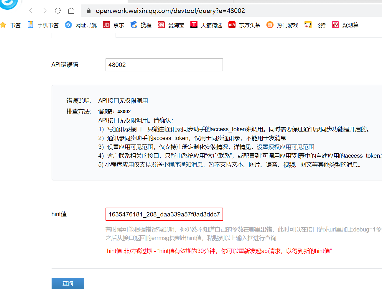 [2021-12-10 23:30:45.897] [ERROR] com.baosight.rplat4j.rt.so.service.ServiceRTSO20 - me.chanjar.weixin.common.error.WxErrorException: 错误代码:40029, 错误信息:不合法的oauth_code,微信原始报文:{"errcode":40029,"errmsg":"invalid code, hint: [1639150245042453194520328], from ip: 123.234.29.196, more info at https://open.work.weixin.qq.com/devtool/query?e=40029"}