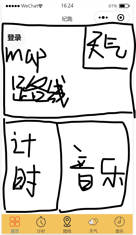 后续首页不会出现tabBar,需要点击分区模块进入其他页面。