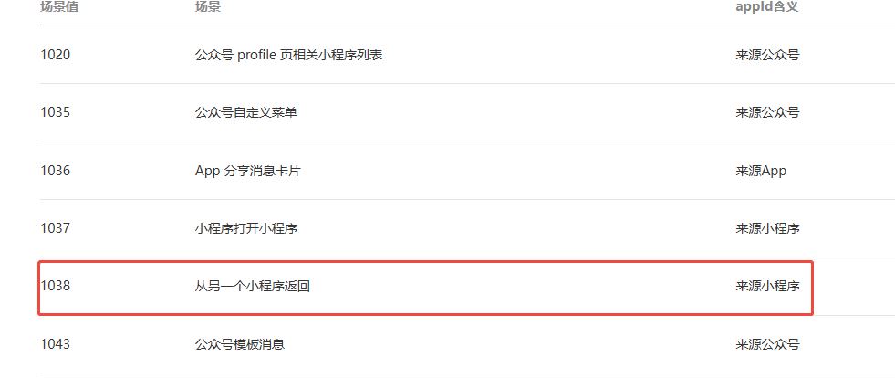 从B退回A的场景值为1038,然后在退到app,此时A应该是置于后台的,你在打开A的时候为热启动,就出现还是上一次的场景值了吧