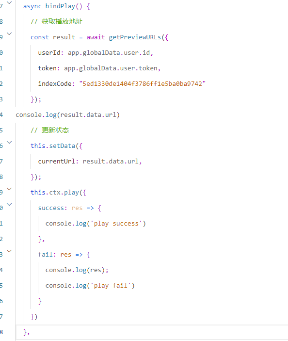 点击播放按钮,进行获取视频流播放地址并进行播放,播放代码如下: