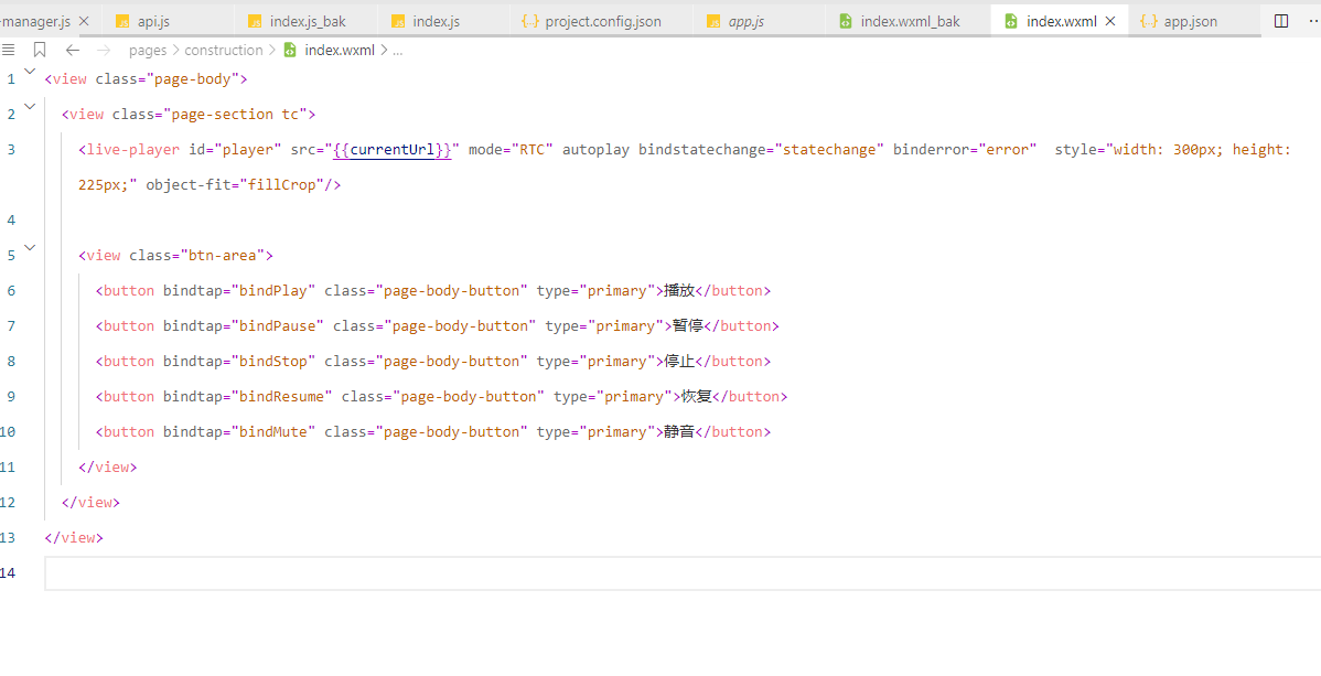 加载live-player的index.wxml页面代码如下: