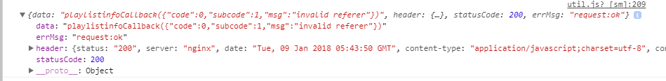 //获取推荐歌单数据function getCdlistInfo(id, callback) { wx.request({ url: 'https://c.y.qq.com/qzone/fcg-bin/fcg_ucc_getcdinfo_byids_cp.fcg?type=1&json=1&utf8=1&onlysong=0&disstid=3640325634&format=jsonp&g_tk=5381&jsonpCallback=playlistinfoCallback&loginUin=0&hostUin=0&format=jsonp&inCharset=utf8&outCharset=utf-8¬ice=0&platform=yqq&needNewCode=0', data: { }, method: 'GET', header: { 'content-type': 'application/json' }, success: function (res) { if (res.statusCode == 200) { console.log(res); callback(res); } } });} |