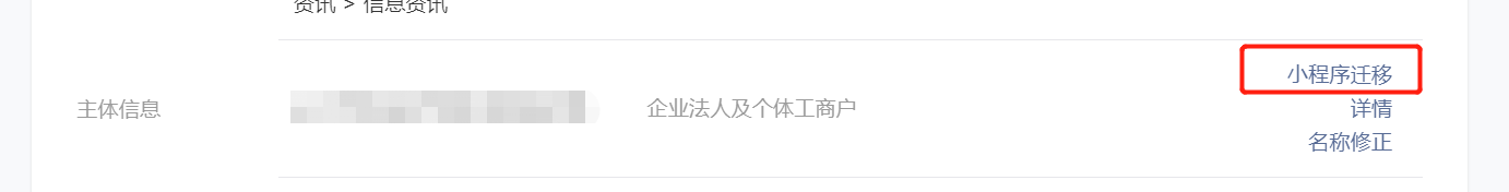 小程序后台-设置-基本设置-主体信息-小程序迁移