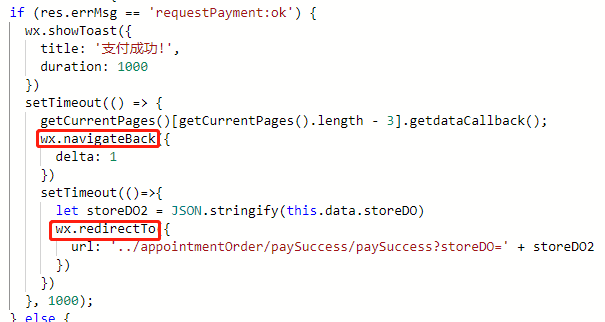 如果当前页面支付不成功或取消了支付,点返回是可以回到上一个页面,所以上一个页面不能使用redirectTo(=~=)