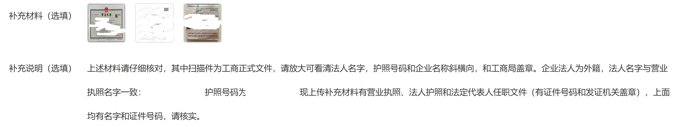 提供了我们能提供的工商及市场监督管理局盖章的材料后,又说不匹配。明明人工校验一下可以通过的事情,非要折腾,关键是还没法说出具体材料的名称。