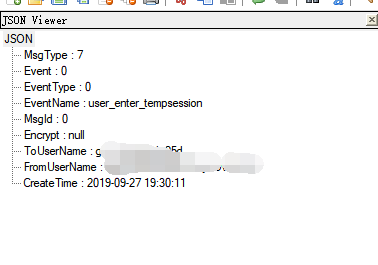 实际异步返回数据:{"MsgType":7,"Event":0,"EventType":0,"EventName":"user_enter_tempsession","MsgId":0,"Encrypt":null,"ToUserName":"******","FromUserName":"*****************","CreateTime":"2019-09-27 19:30:11"}