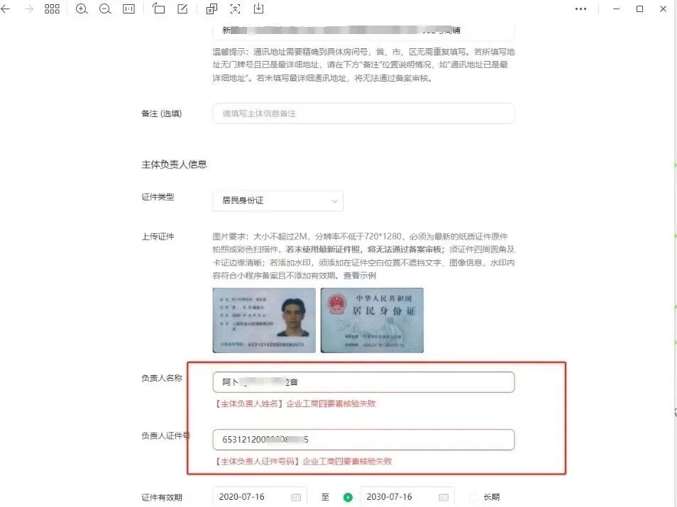 这是刚毕业的大学生,营业执照就是用自己的身份办理的,毕业后回老家创业,上大学在上海,当时办理的身份证,为什么出现这种情况,注册一个小程序怎么麻烦吗,我都不想搞这些了,好久了各种坑,不让过。