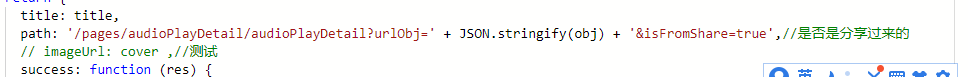 /** * 跳转传参只能是 String,所以参数是对象的话得 stringify,同时 encodeURIComponent 避免有 ? 时被截掉 */function object2String(obj) { return encodeURIComponent(JSON.stringify(obj))}/** * 解析回 object */function string2Object(str) { return JSON.parse(decodeURIComponent(str))}