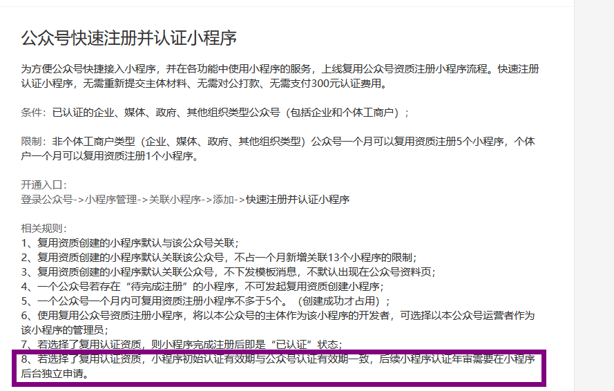 我看公众号后台又有了这个选项提示,那复用公众号资质认证的小程序需不需要到期再次认证呢?微信这是搞啥,能不能再做相关决定的时候发个公告?还有就是通过独立认证的小程序到期需不需要缴费认证了?