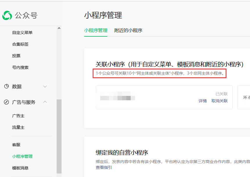 公众号要关联这个小程序