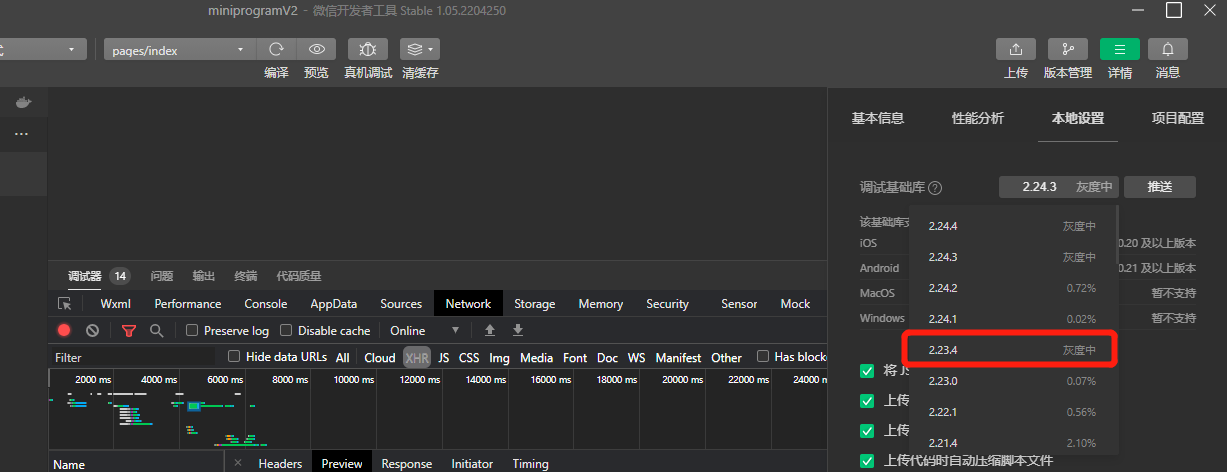 2. 2.23.4基础库版本已经导致用户使用小程序部分功能受影响,但是以前的这个版本同样的代码功能正常,请官方答复下2.23.4版本有哪些修改,怎么会显示灰度中?